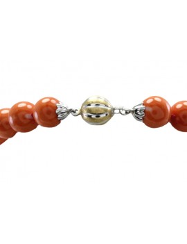 Bellissima collana in corallo, con chiusura in oro bianco e oro giallo 18 kt.