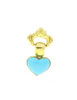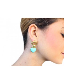 Deliziosi e romantici orecchini montati in oro giallo 18 kt, composti da una struttura in oro che sorregge due cuori in turchese.