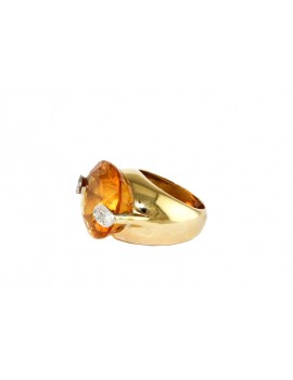 Fantastico anello montato in oro giallo 18 kt, composto da un topazio ovale centrale, fermato da lucenti diamanti.